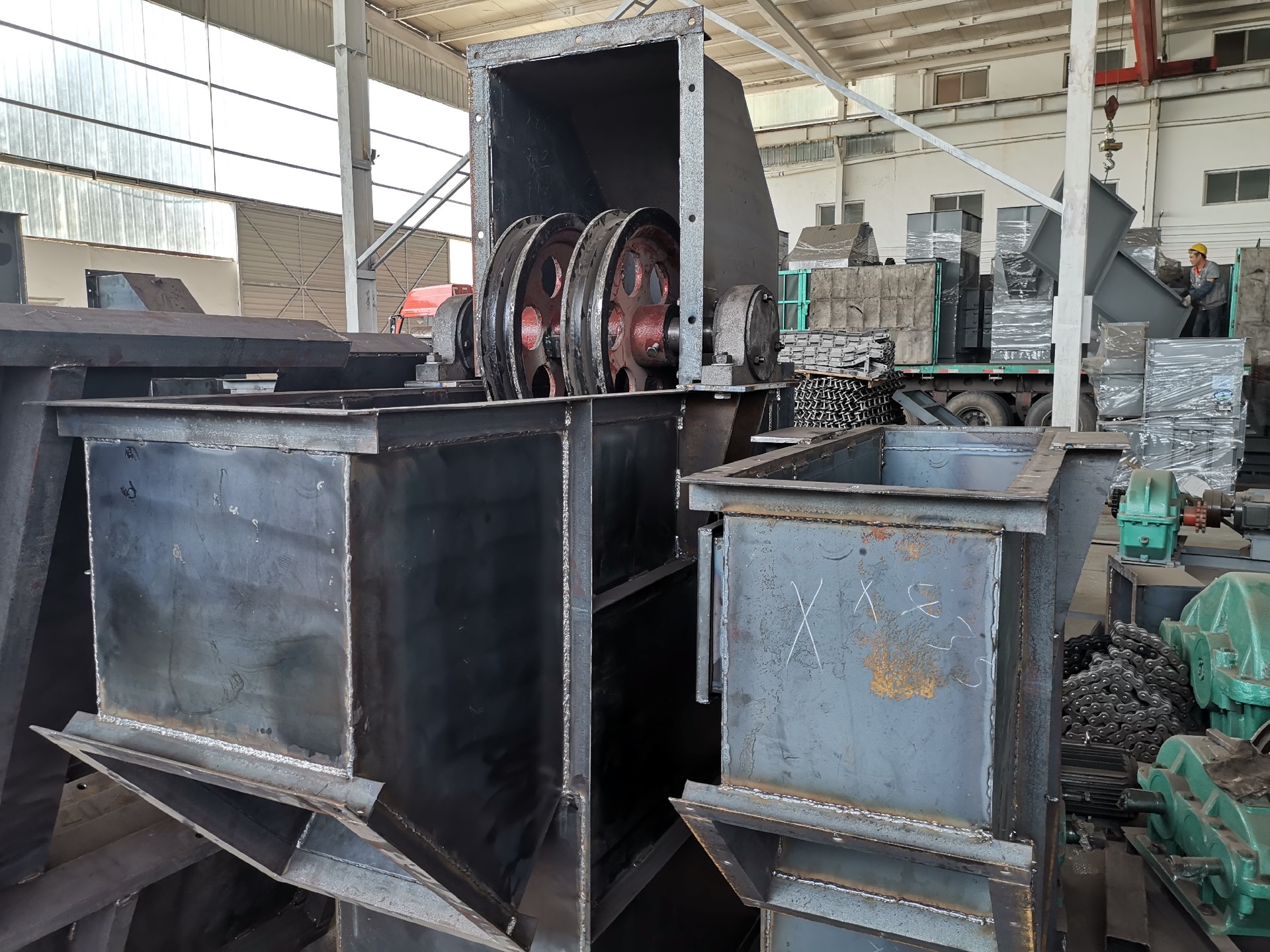 藍色款斗式提升機機頭和機尾展示圖